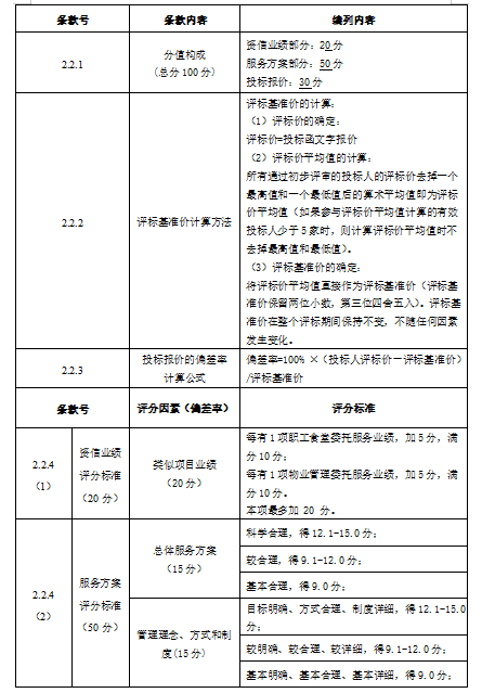 2.2招標(biāo)范圍:職工食堂及物業(yè)管理服務(wù),職工食堂服務(wù)人員數(shù)量不少于27人,其中:廚師不少于9人,幫廚不少于5人,面點(diǎn)不少于7人,食堂服務(wù)員不少于6人;物業(yè)服務(wù)人員數(shù)量不少于40人,其中:會(huì)務(wù)不少于1人,維修工不少于8人,安保不少于15人,保潔不少于15人,前臺(tái)不少于1人?;锸硺?biāo)準(zhǔn)按每人每月500元標(biāo)準(zhǔn),按2023年1月實(shí)際用餐人數(shù),共計(jì)340人。(食材包干)