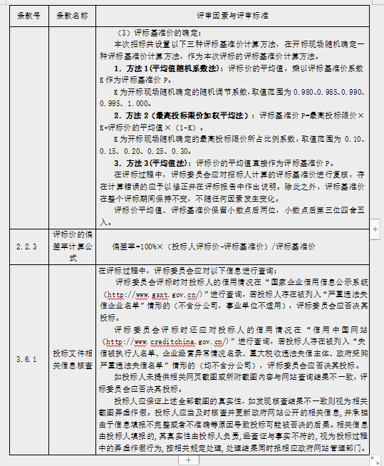 三、隨機(jī)確定評(píng)標(biāo)基準(zhǔn)價(jià)計(jì)算方法和所需參數(shù)